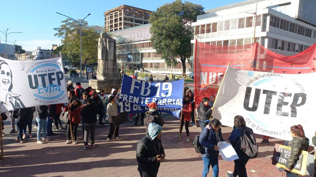 «Reclamamos que lleguen alimentos a los comedores». Evelyn Kloster, integrante de la UTEP, dialogó con el movil de #GPS en la protesta que se realizo frente a Casa de Gobierno. «No llegó ni un paquete de arroz luego de la sanción de la emergencia alimentaria». (audio)
